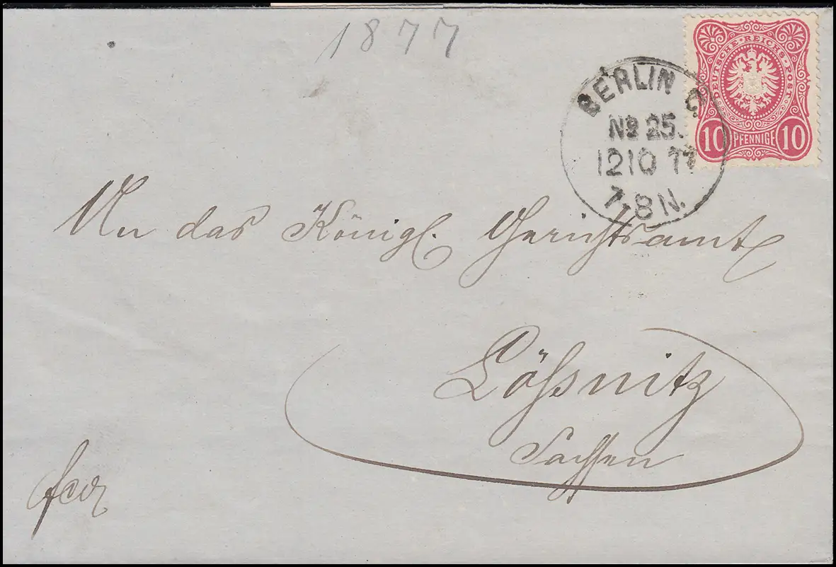 33 Adler 10 PFENNIGE EF Brief Einkreis-O BERLIN C. No. 25 - 12.10.77 n. LÖSSNITZ