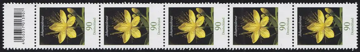 3304 Blume 90 Cent, 5er-Streifen mit Codierfeld, postfrisch **
