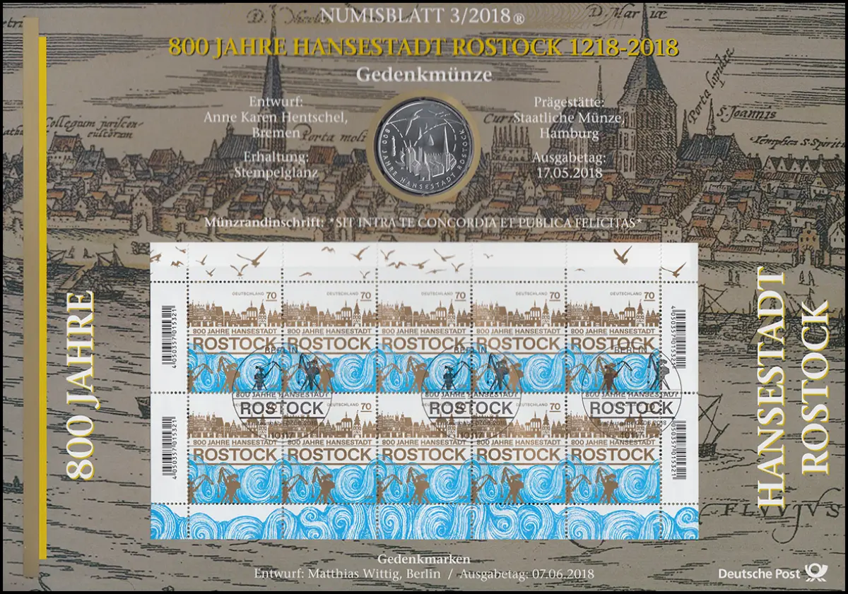 3395 800 Jahre Hansestadt Rostock - Numisblatt 3/2018