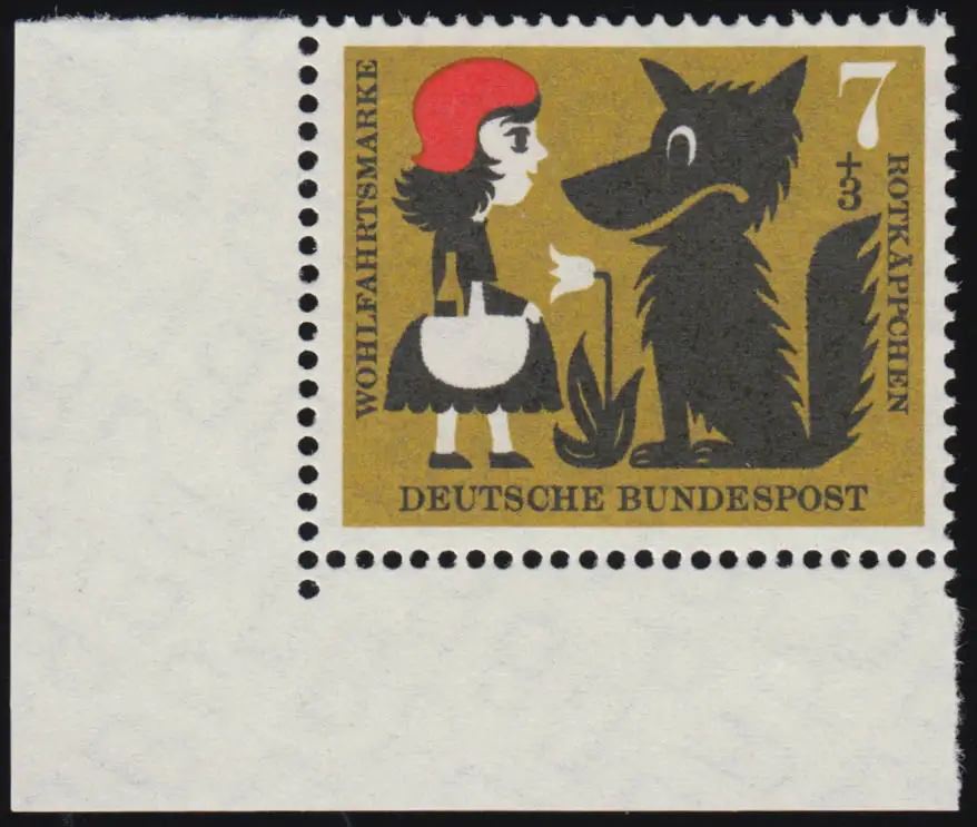 340 Wohlfahrt Grimm 7+3 Pf Rotkäppchen ** Ecke u.l. Zähnung 0-1