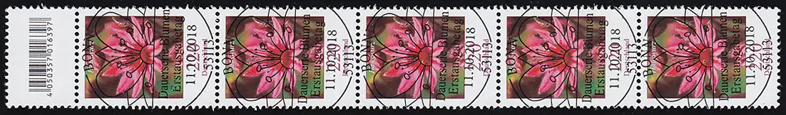 3414 Hauswurz 220 Cent, 5er-Streifen mit Codierfeld, ESSt Bonn 11.10.18