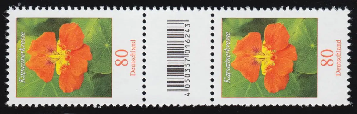 3469 Kapuzinerkresse 80 C. 500er Paar mit KLEINER Nummer, Codierfeld, ohne Nr.**