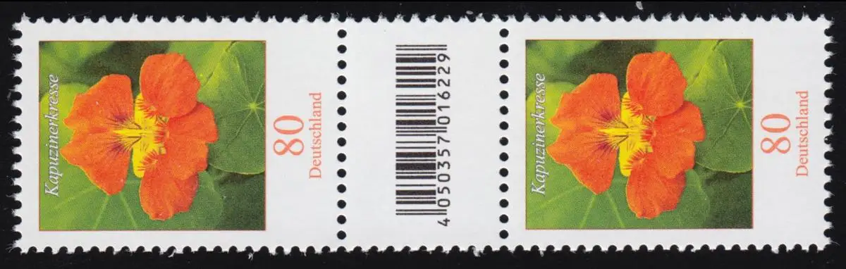 3469 Kapuzinerkresse 80 C. aus 200er, Paar mit GROßER Nr. - CF - ohne Nr. **