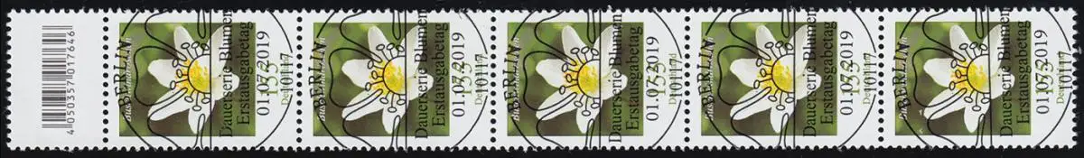 3472 Buschwindröschen 155 Cent aus 500er-Rolle, 5er-Streifen mit CF, ESSt Berlin