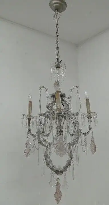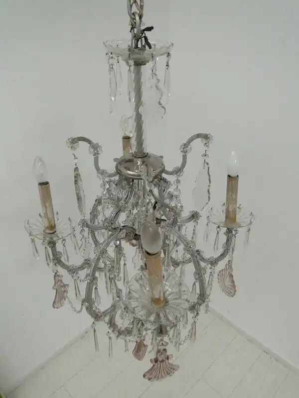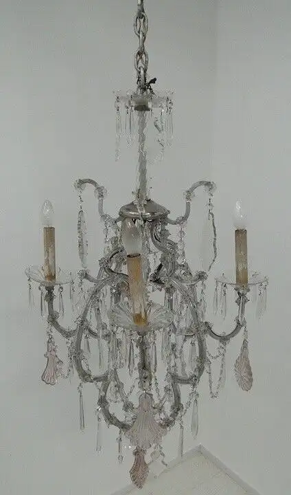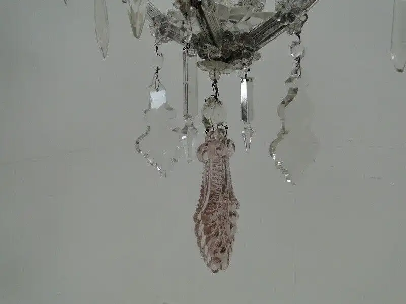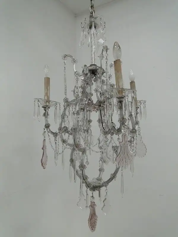 Ein herrlicher Kristall Luster, mit wunderschönen Elementen in rose, 4flammig, exkl. Leuchtmittel, Zustellung mittels Spedition, aufgrund der Größe und des Gewichts. \n\nMaße: Durchmesser: ca. 65 cm breit ca. 170 cm hoch \n\nArtikelnummer: 3477 Bei unseren Lustern erhalten Sie keine Gewähr auf die Elektronik, da wir nicht sagen können ob diese der geltenden Norm entspricht.