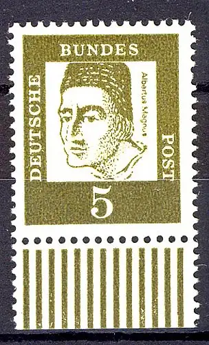 347yII Bed. Deutsche 5 Pf dicke Walzenstriche Unterrand ** postfrisch