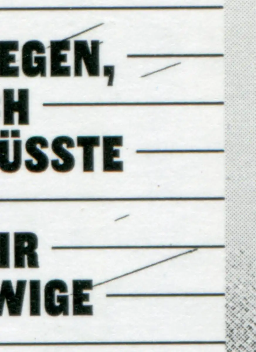MICHEL-Plattenfehler II: vier schräge schwarze Striche in der Klaviatur bei den Worten LIEGEN, MIR und EWIGE