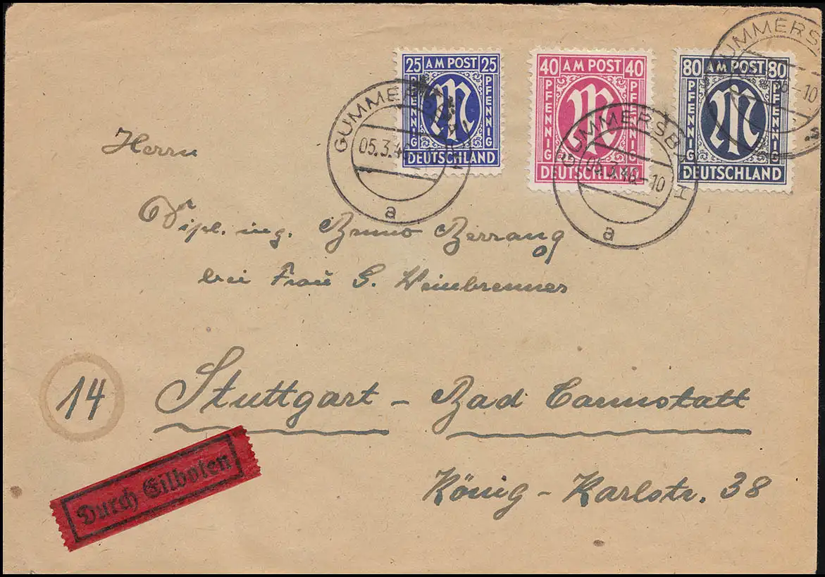 Neben der 80 Pf in der besseren A-Variante wurde hier auch die 40 Pf in der seltenen b-Farbe frankiert. MICHEL-Wert 2023 über 900,- Euro!