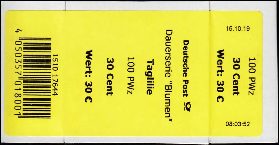 3509 Taglilie 30 Cent Banderole / Aufkleber der 100er-Rolle