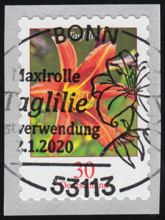 3516 Taglilie 30 Cent sk aus 10000er mit UNGERADER Nummer, EV-O Bonn 2.1.2020