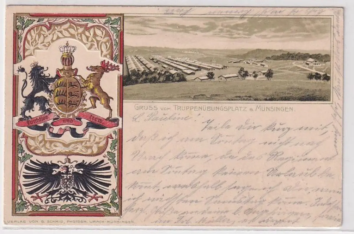 35402 Wappen Präge Ak Gruß vom Truppenübungsplatz Münsingen 1901