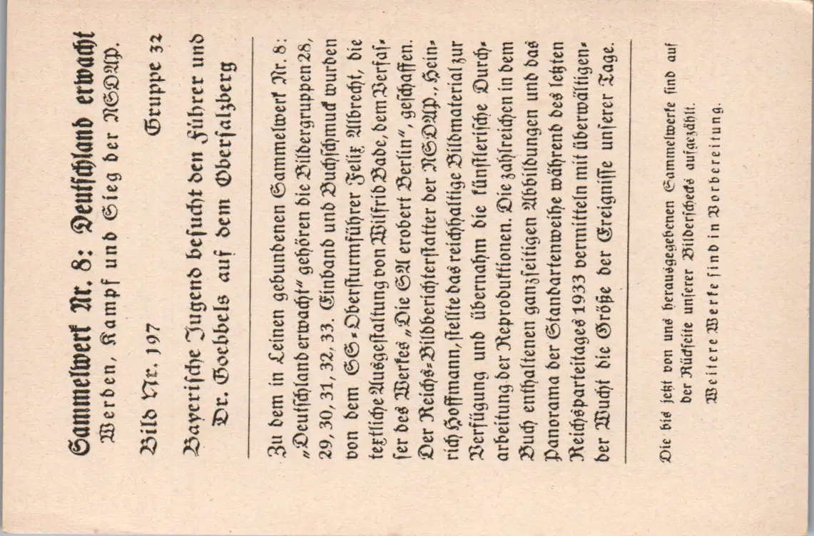 35583 - Sammelbilder - Sammelwerk Nr. 8 , Deutschland erwacht , Gruppe 32 , Bild Nr.: 197 , Bayerische Jugend besucht den Führer und Dr. Göbbels auf dem Obersalzberg
