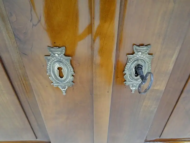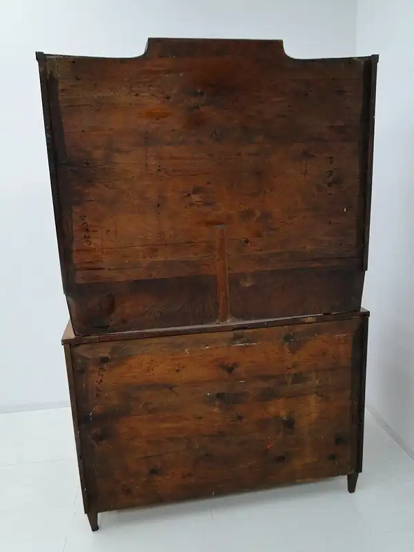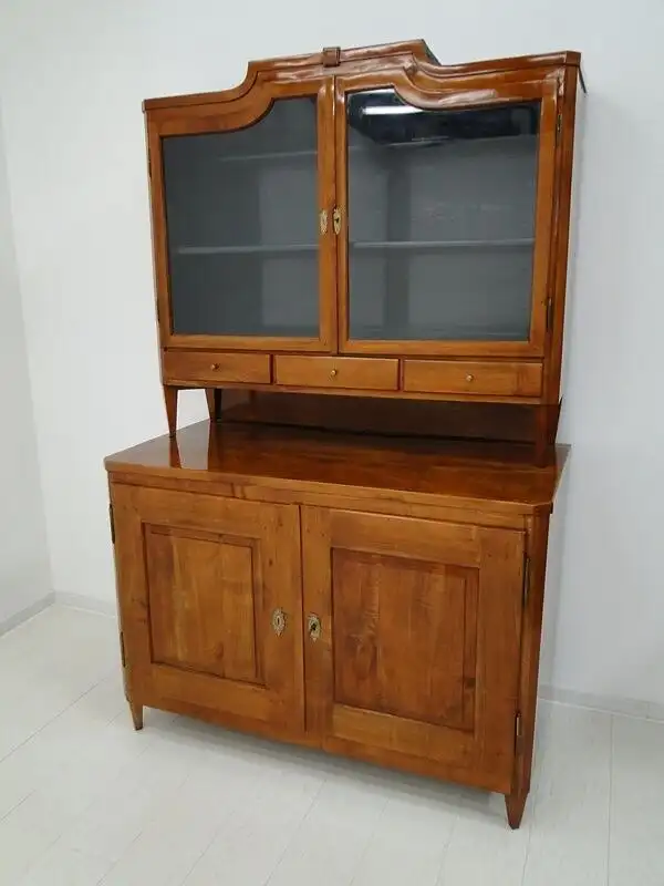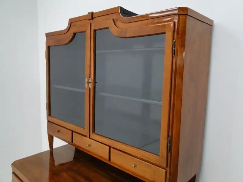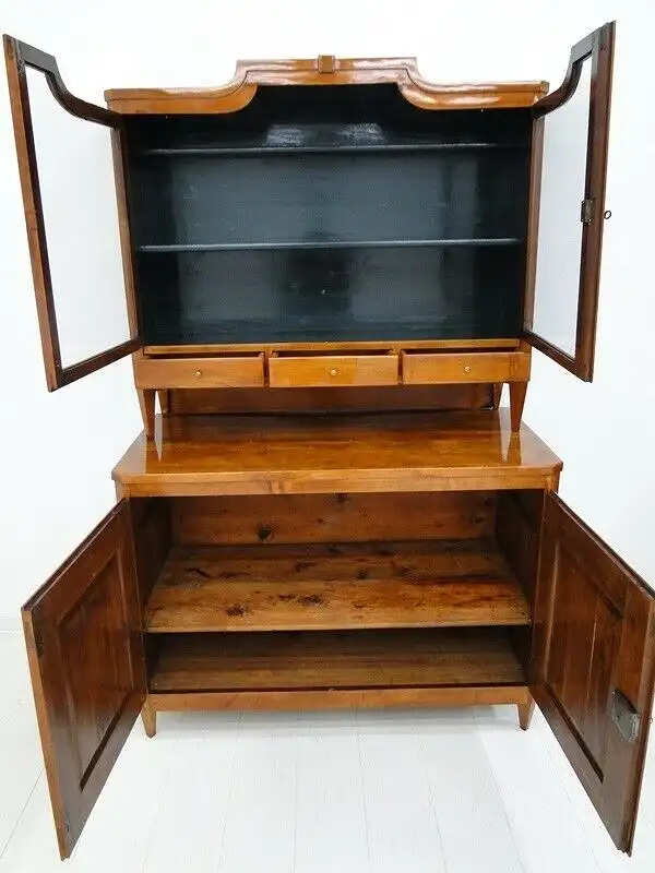 Eine herrliche Josefinische Aufsatzkommode mit 4 Flügeltüren, zwei davon mit Glaseinsätzen, innen 3 Fachbretter vorhanden, drei kleine Schubalden, Schlösser mit 2 Schlüssel, wie auf den Bildern ersichtlich mit leichten altersbedingten Gebrauchsspuren, sehr schöner Erhaltungszustand. \n\nMaße: ca. 127,5 cm breit ca. 201,5 cm hoch ca. 65 cm tief Artikelstandort: KS-H