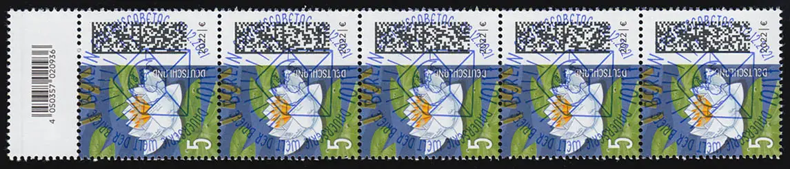 3644 Seebriefrose 5 Cent aus 200er, 5er-Streifen mit Codierfeld, ESSt Berlin