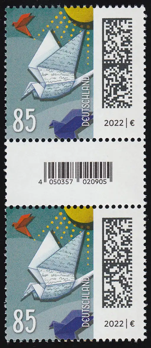 3645 Brieftaube 85 Cent aus 200er (BDB), Paar mit Nr., Codierfeld, ohne Nr. **