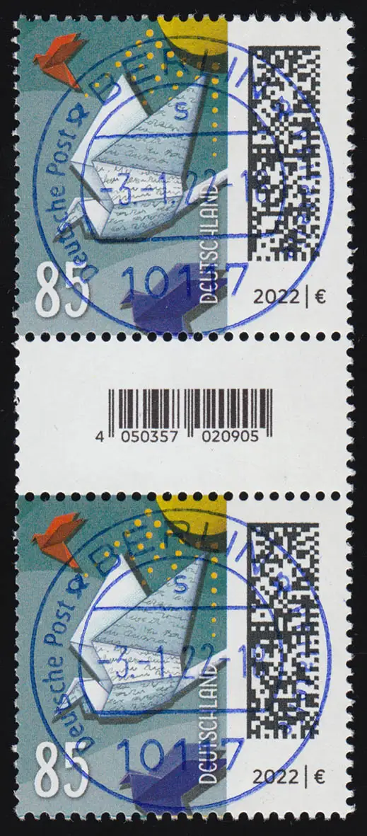 3645 Brieftaube 85 Cent aus 200er, Paar mit Nr., CF, ohne Nr., ET-O VS Berlin