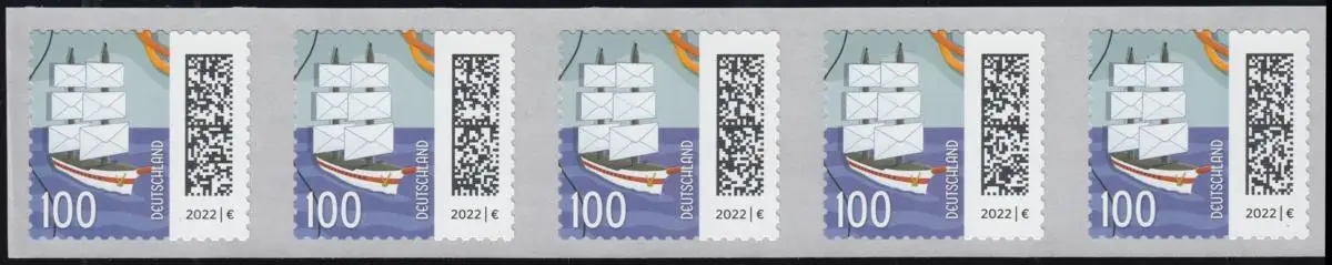 3653 Briefsegler 100 Cent sk aus 500er, 5er-Streifen GERADE Nummer **