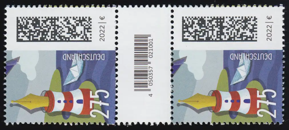 3657 Leuchtfederstift 275 C. aus 100er, Paar mit Nr., Codierfeld, ohne Nr. **