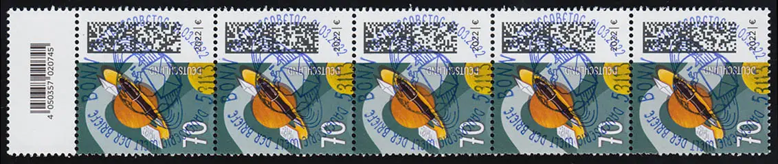 3670 Brief auf Umlaufbahn 70 C. 200er 5er-Streifen mit Codierfeld, ESSt Bonn
