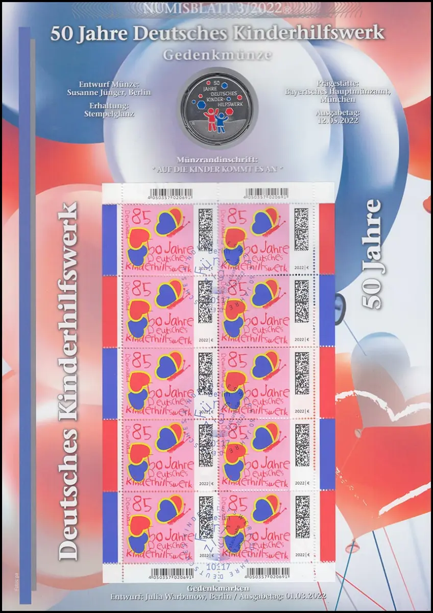 3676 50 Jahre Deutsches Kinderhilfswerk - Numisblatt 3/2022