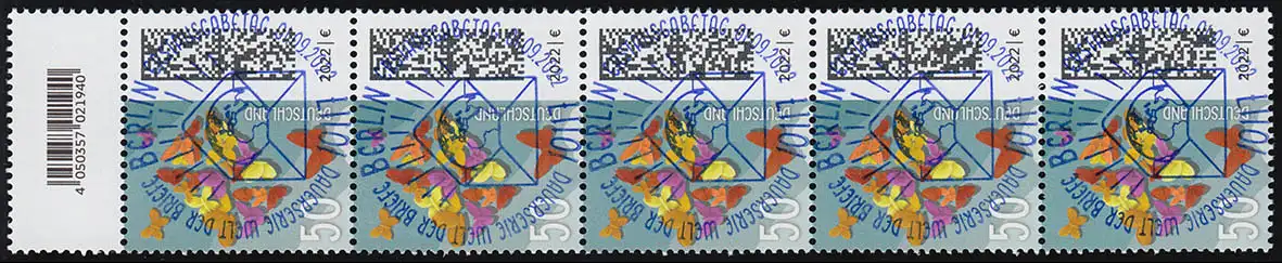 3714AI Schmetterlingsbrief 50 C. 200er, 5er-Streifen mit Codierfeld, ESSt Berlin