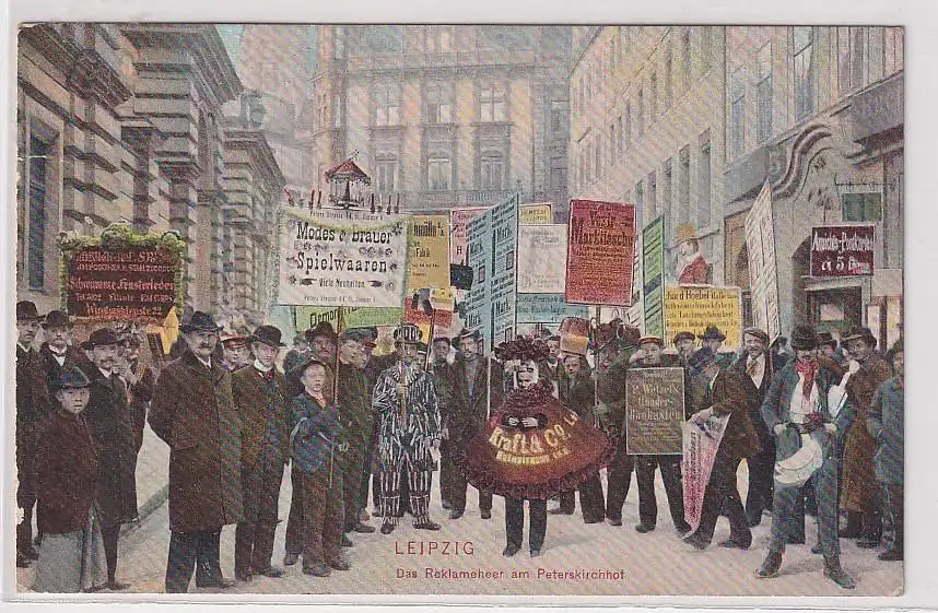 38032 Ak Leipzig das Reklameheer am Peterskirchhof 1905