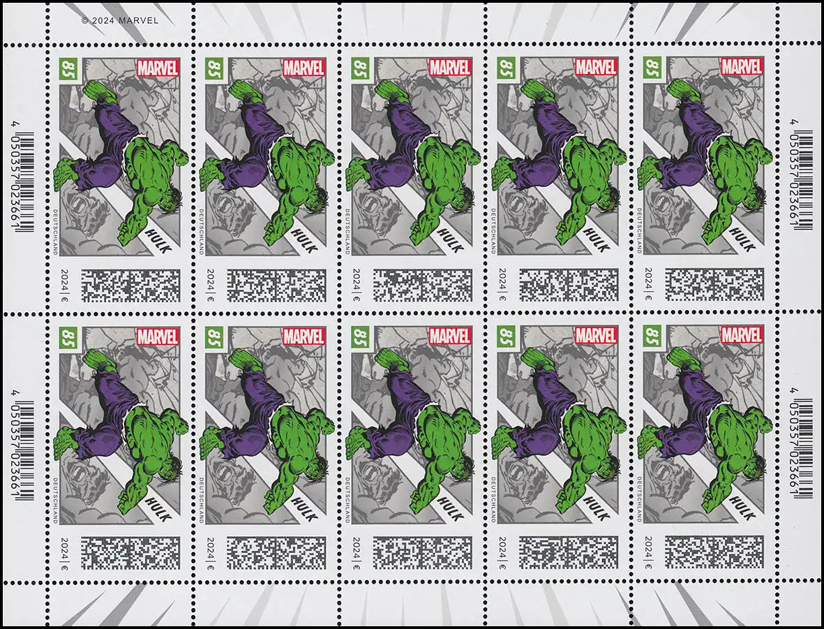 3847 Superhelden - Hulk, 10er-Bogen postfrisch ** / MNH