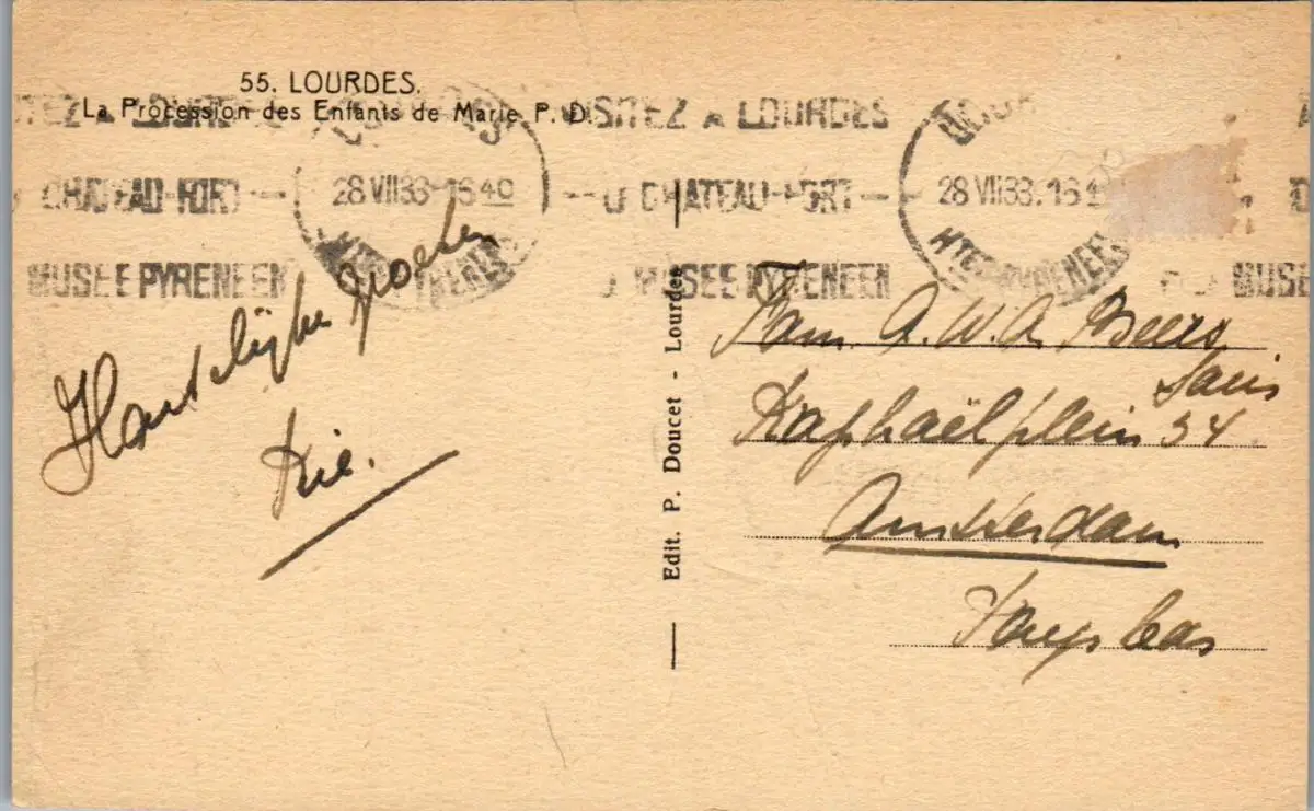 38512 - Frankreich - Lourdes , La Procession des Enfants de Marie P. D. - gelaufen 1933