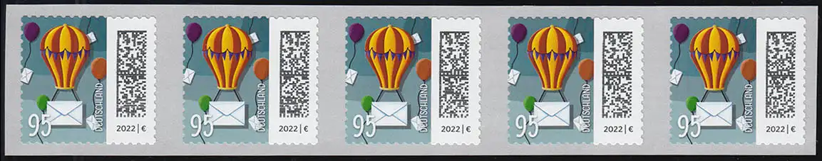 3873 Ballonpost 95 Cent sk 100er ENS 5er-Streifen UNGERADE Nummer **