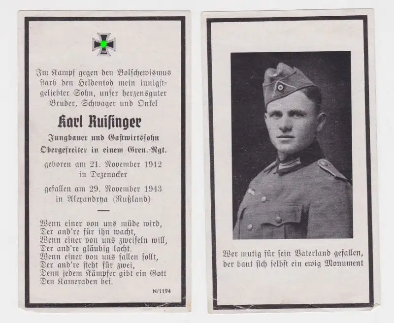 38838 Sterbebild WK2 Grenadier-Regiment gefallen in Alexandrya Russland 1943