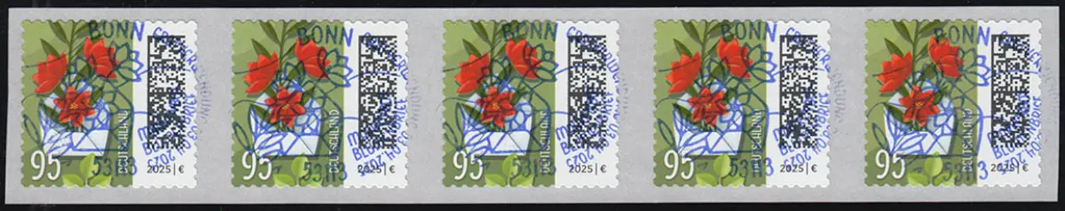 3903 Blumenbrief 95 Cent sk 5000er ENS 5er-Streifen GERADE Nummer EV-O Bonn