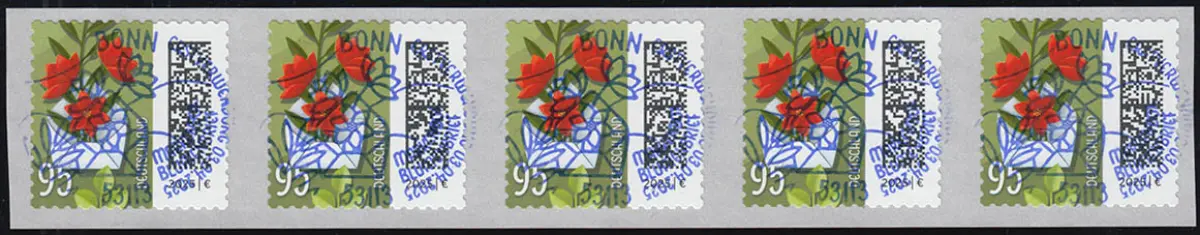 3903 Blumenbrief 95 Cent sk 500er ENS 5er-Streifen UNGERADE Nummer EV-O Bonn