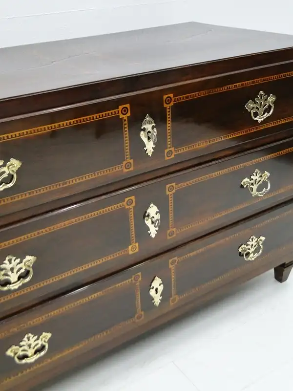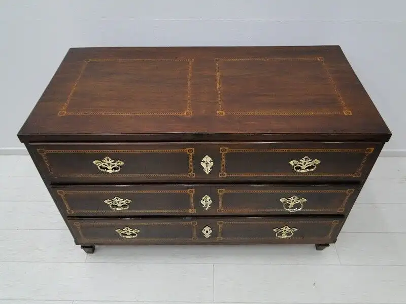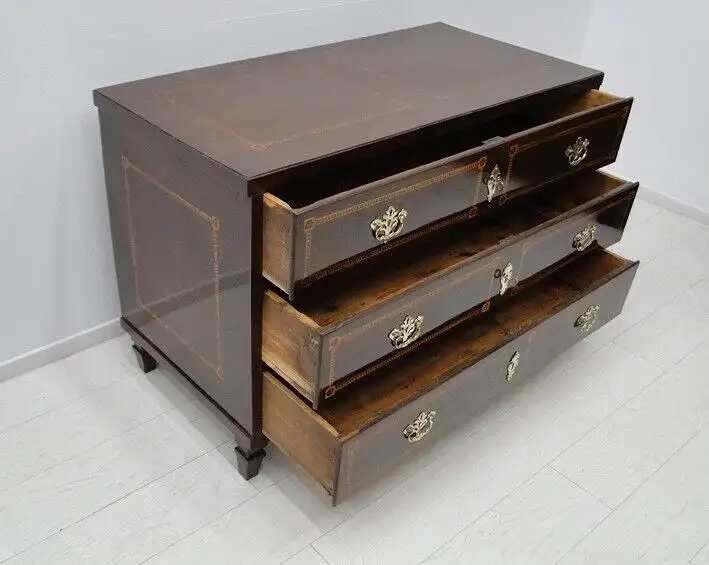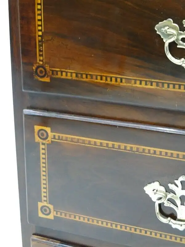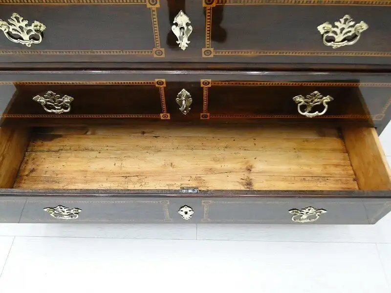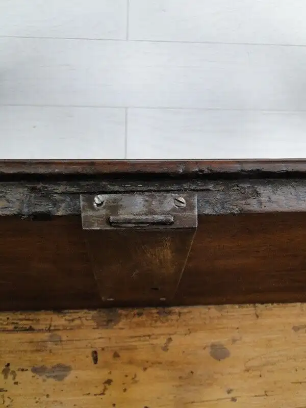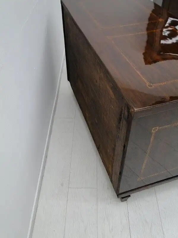 bzw. ergänzten Furnierstücken, leider wurden die Beschläge