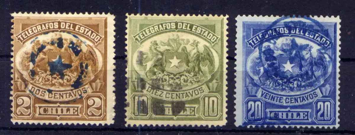 (395) Chile Telegraphenmarken Nr.1/3 O gestempelt