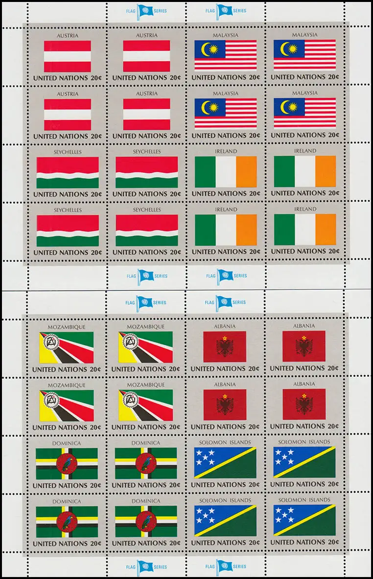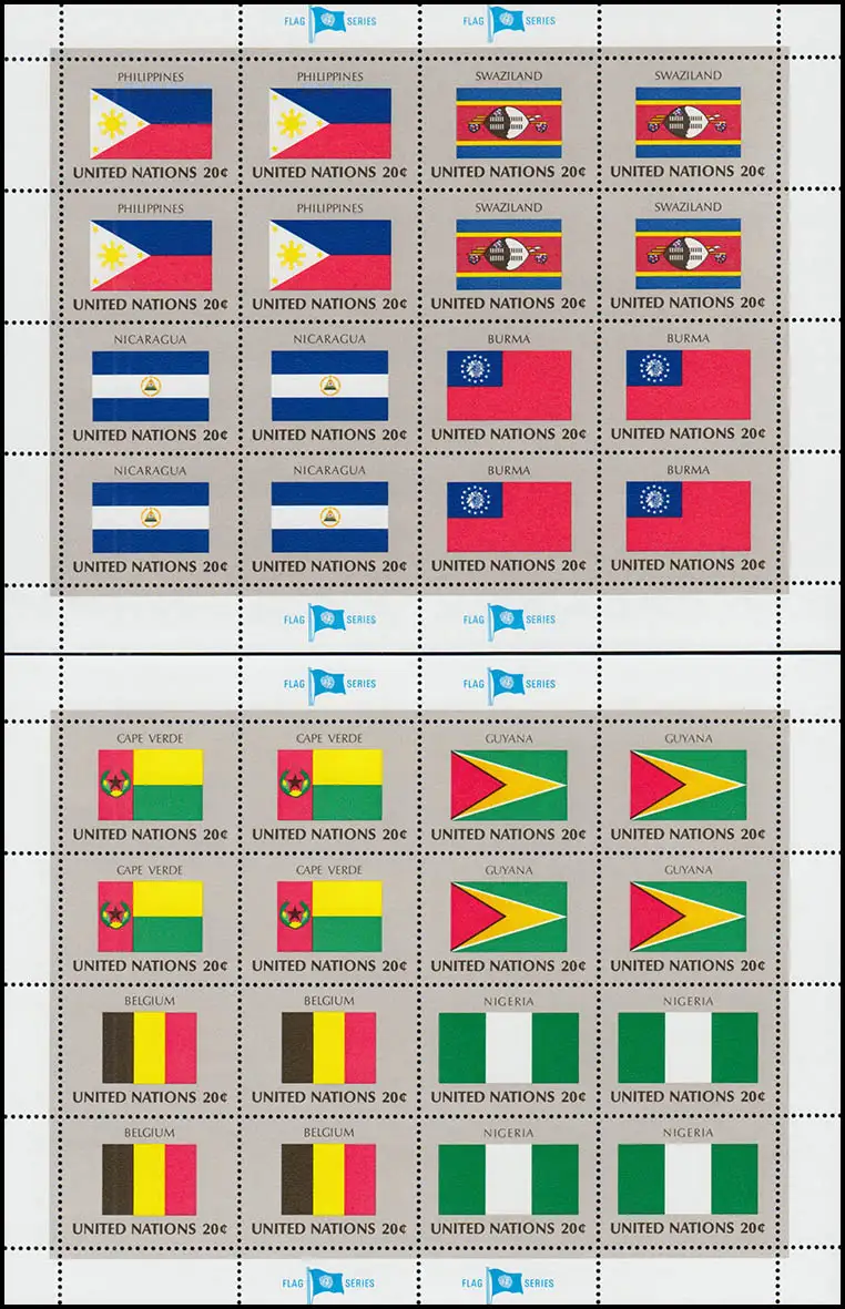 397-412 UNO New York Flaggen III 1982: Satz mit 4 Zusammendruck-Bogen **