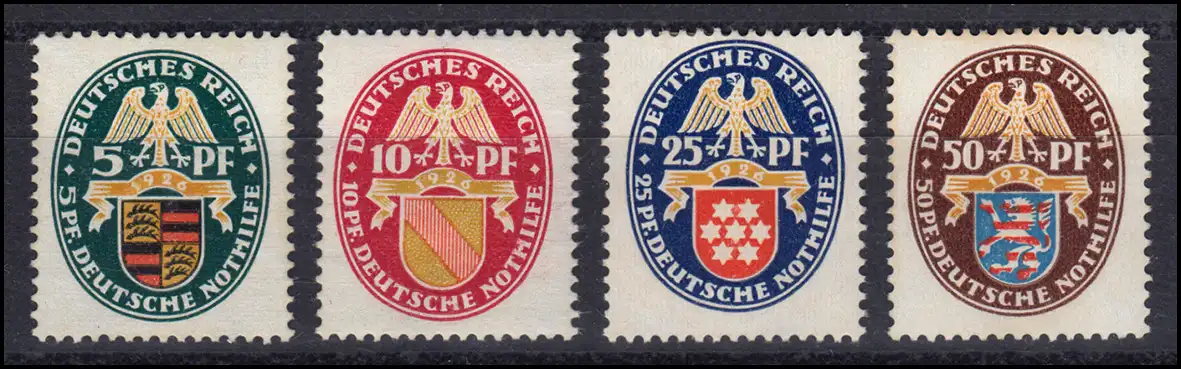 398-401 Nothilfe Landeswappen 1926, Satz mit Falz / Falzresten *