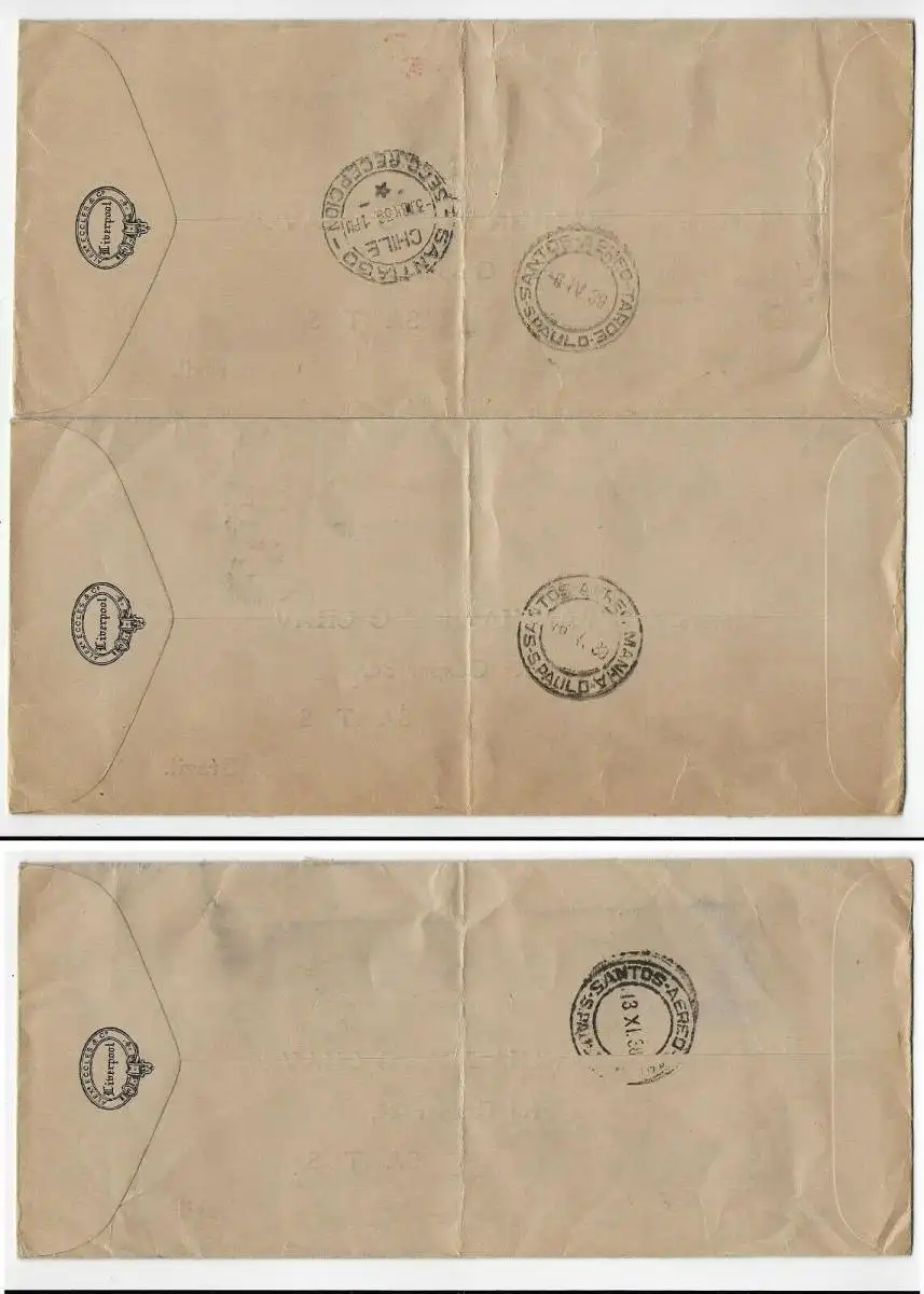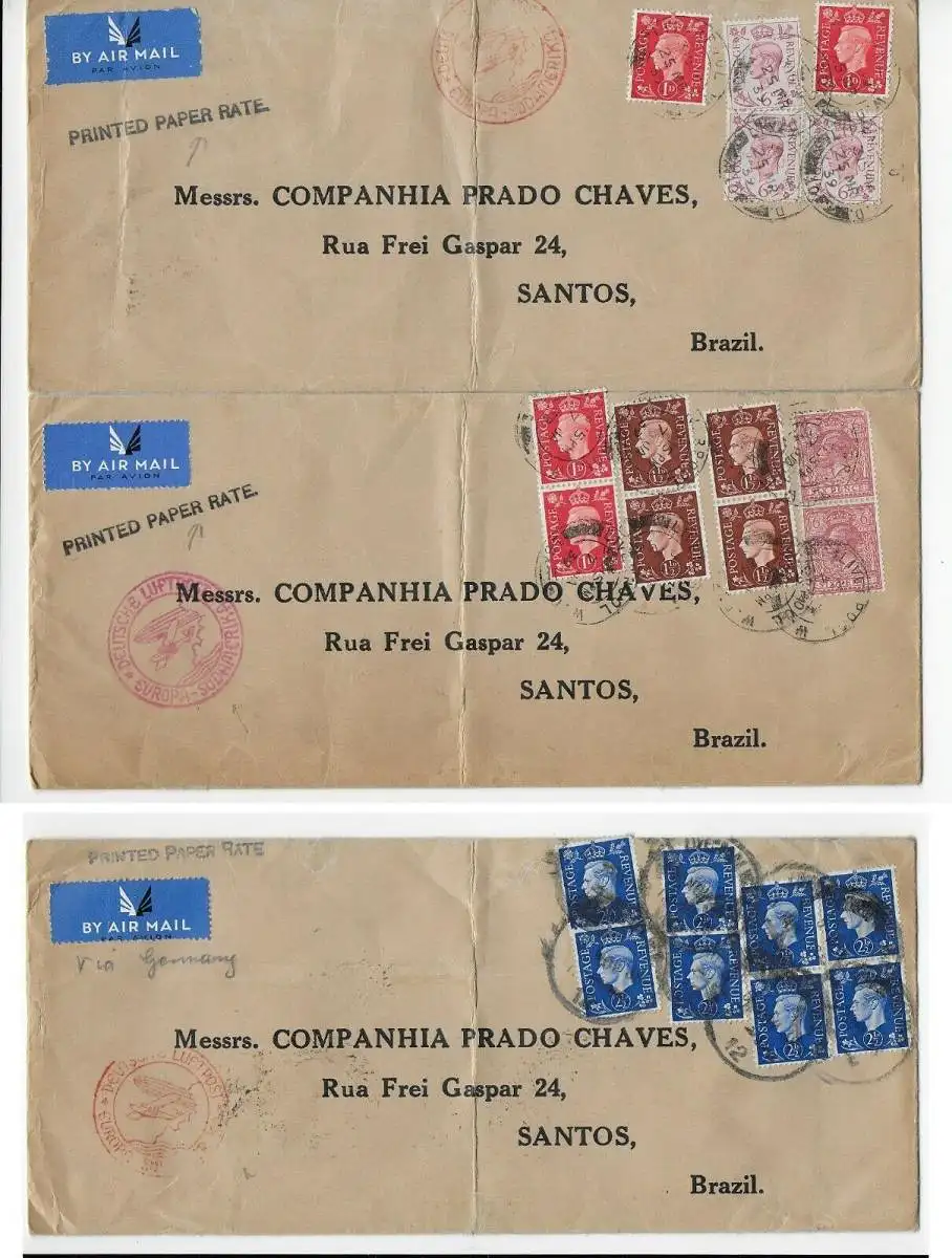 3x Printed matter 1937 to Santos/Brazil with Lufthansa: Europa-Südamerika