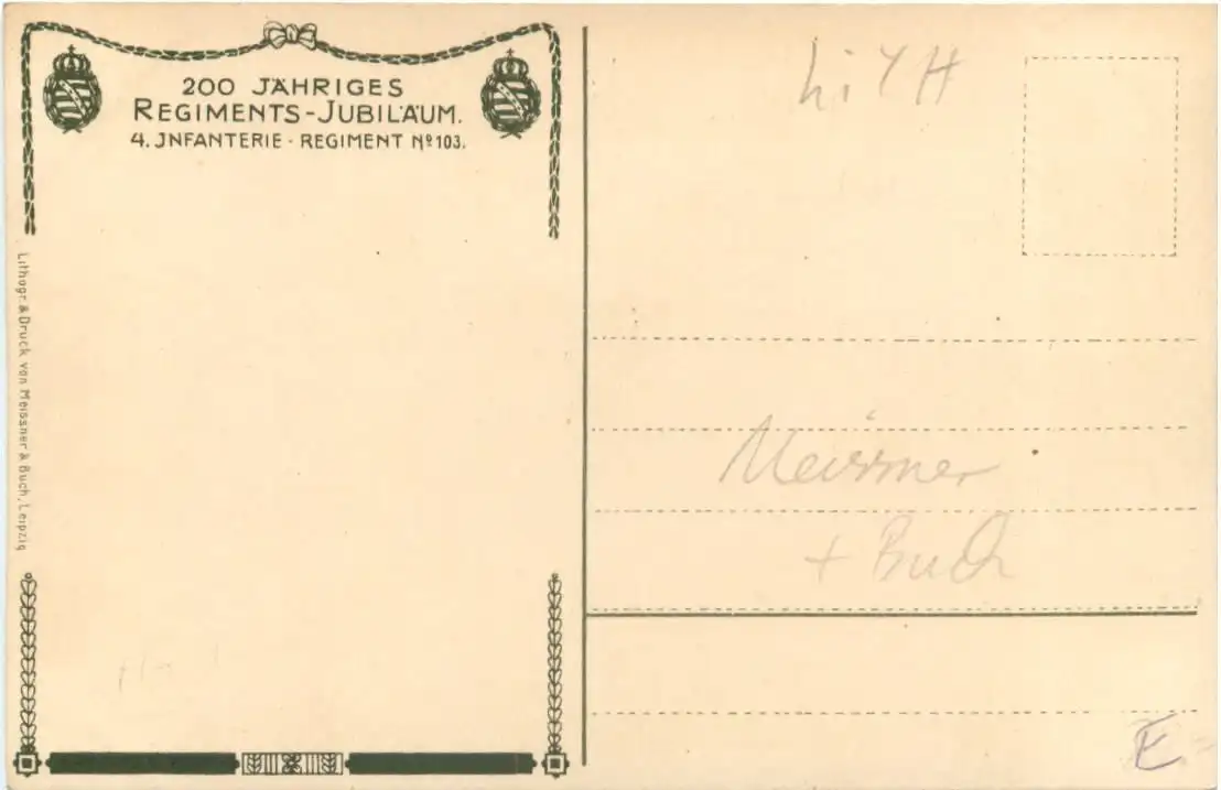 4. Infanterie Regiment 103 Jubiläum - Litho -786004