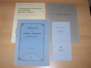 Titel: 4 TITELN (ITALIENISCH.) ZUR ANTIKE GESCHICHTE : MARTIN DREHER "LA DISSOLUZIONE DELLA POLIS DI LEONTINI DOPO LA PACE DI GELA (424 a.C.)" aus ANNALI DELLA SCUOLA NORMALE SUPERIORE DI PISA, Serie III, Vol. XVI, 3, Pisa 1986, S. 637-660 // UMBERTO LAFFI "POTERI TRIUMVIRALI E ORGANI REPUBBLICANI" aus BIBLIOTHECA DI ATHENAEUM, Ediz. New Press, Como, 1993, S. 37-65 mit Anhang // BENEDETTO MARZULLO "Una educazione militare", Giardini Edit. Pisa, 19 S. (Kl. Pressedruck) // DIETER TIMPE "APOLOGETI CRISTIANI E STORIA SOCIALE DELLA CHIESA ANTICA" , Firenze, Leo S. Olschki Ed., 1987, S. 99-127. Sonderdruck / Estratto / Tire a part