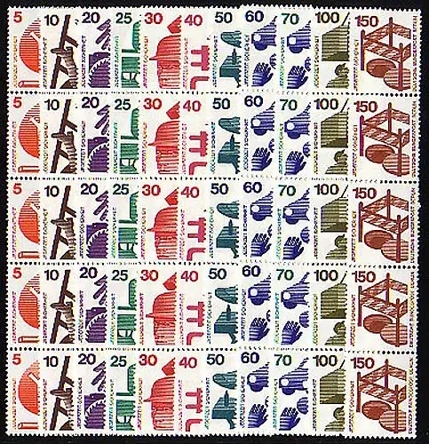 402a ff Unfall 11 Werte komplett, alle im 5er-Streifen mit schwarzer Nr. **