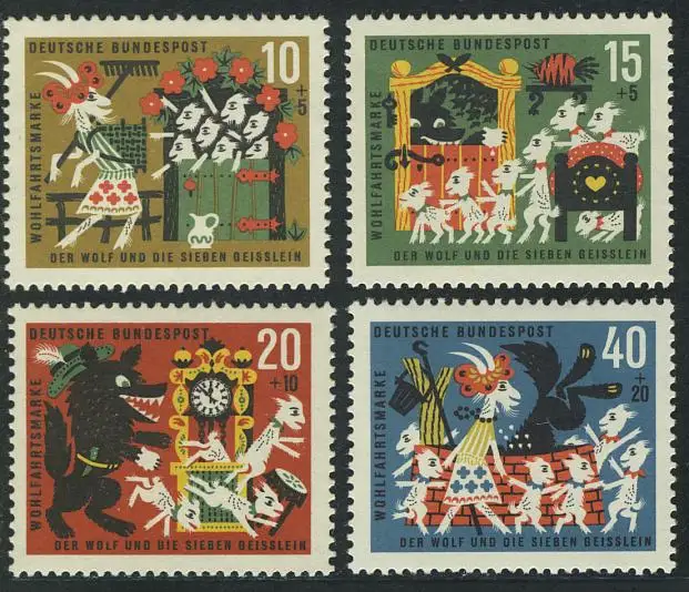 408-411 Märchen Der Wolf und die sieben Geißlein, Grimm 1963, Satz ** postfrisch