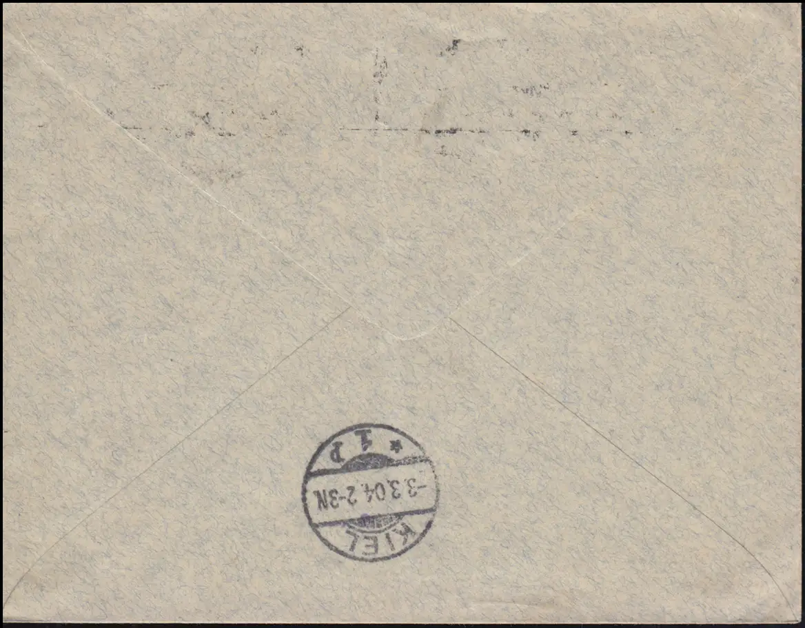Einschreiben von M. Willenius an einen Rechtsanwalt Johannsen in Kiel, Umschlag mittig senkrechter Bug