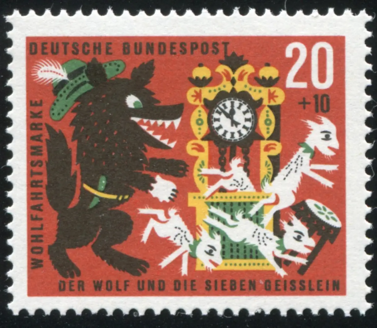 410 Wofa 20 Pf mit PLF roter Strich über linkem Geißlein, Feld 3, **