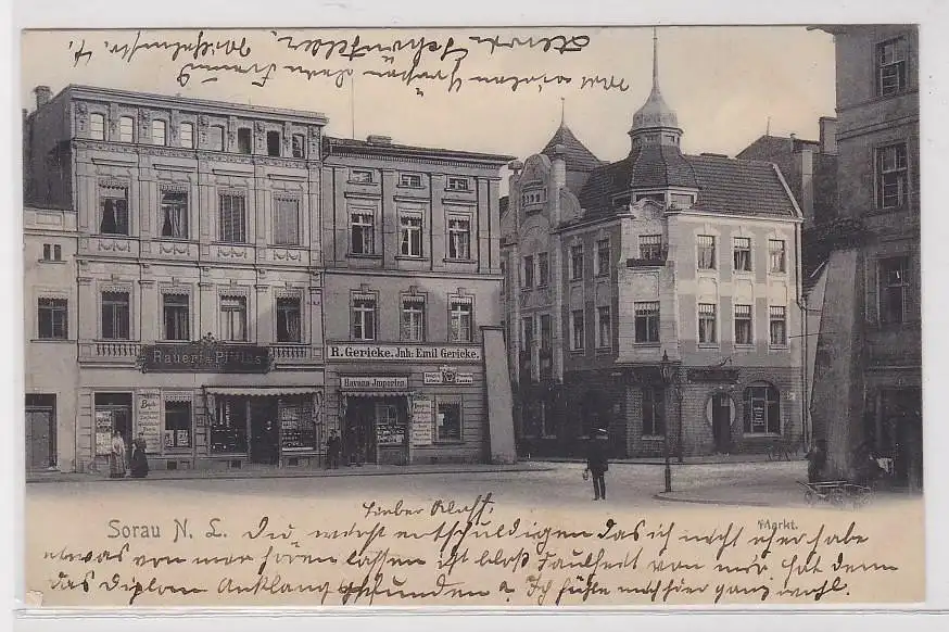 41057 Ak Soaru Żary Markt mit Geschäften 1905