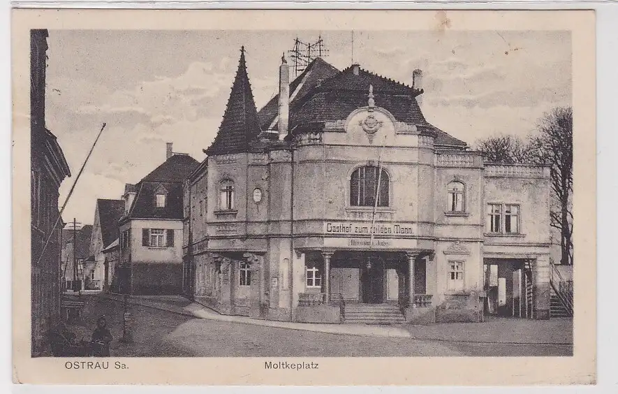 41108 Ak Ostrau - Moltkeplatz mit Gasthof zum "wilden Mann" 1926