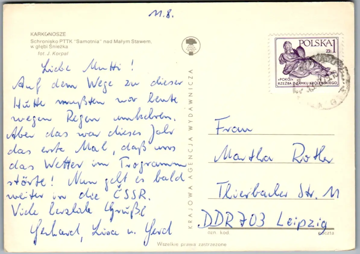 4131 - Karkonosze , Schronisko PTTK Samotnia nad Malym Stawem w glebi Sbiezka - gelaufen 1979