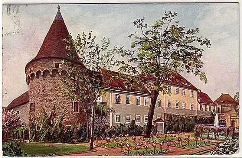 Südostturm und Herrenhaus der Unterburg Giebichenstein gelaufen guter Zustand (leichte Altersspuren), siehe Bild