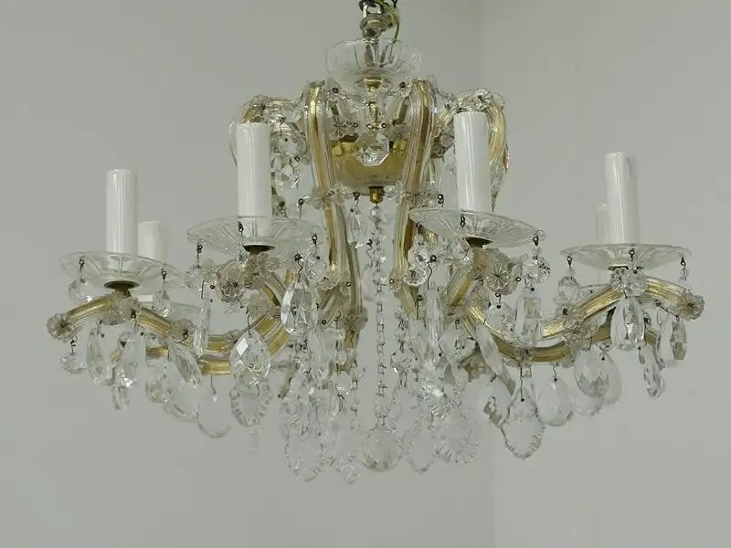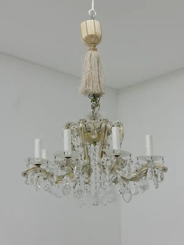 ein wunderschöner 8 flammiger Kristallluster, Verkabelung funktionstüchtig - jedoch keine Gewähr, da wir nicht sagen können, ob sie der geltenden NORM entspricht, exkl. Leuchtmittel. 2 Kartonversand. \n\nMaße: Durchmesser: ca. 60 cm ca. 84 cm hoch \n\nArtikelnummer: 4305