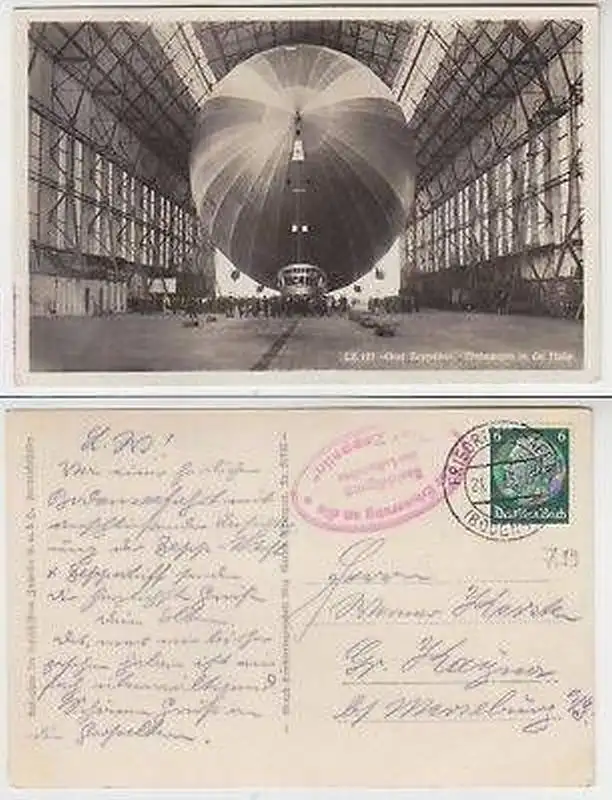 gelaufen mit zusätzlichem ovalem Stempel anläßlich der Besichtigung der Zeppelinwerft Friedrichshafen, gute Erhaltung, siehe Bild
