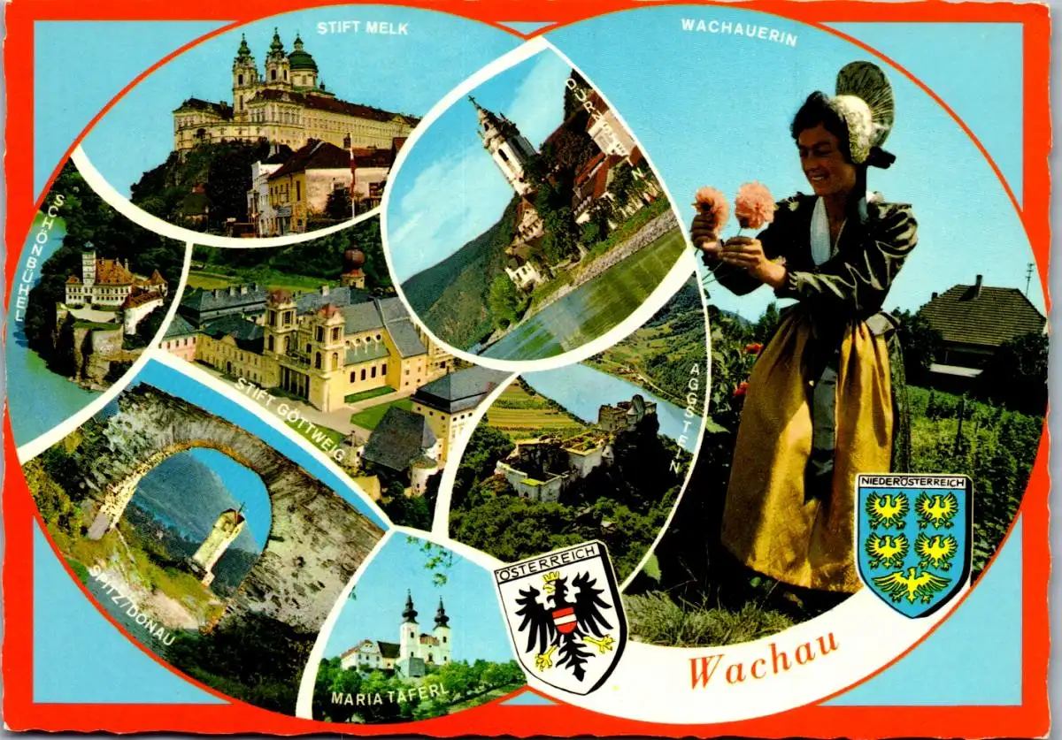 47442 - Niederösterreich - Wachau , Stift Melk , Wachauerin , Tracht , Maria Taferl , Aggstein - gelaufen